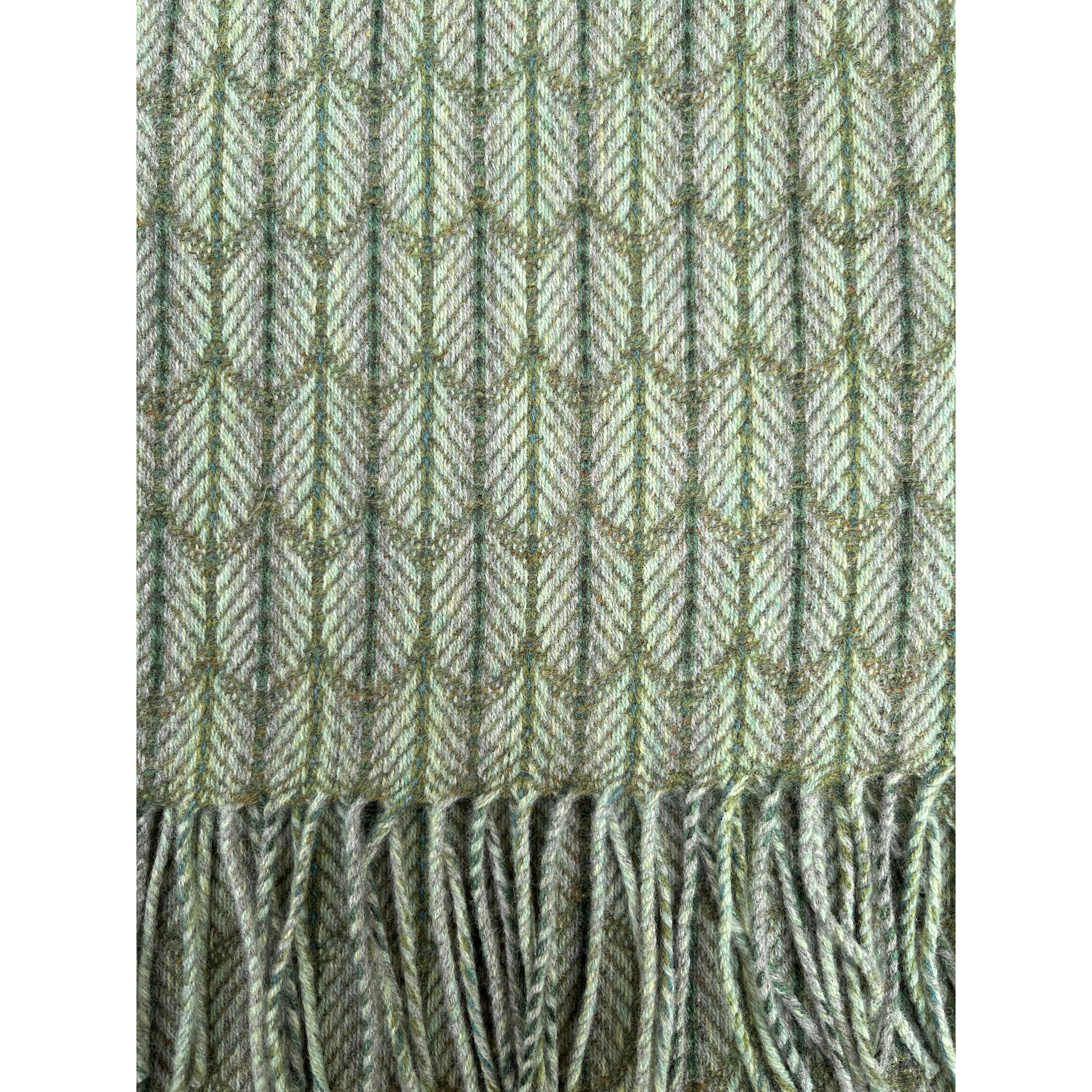 Sarah Tyssen is based is Surrey where she designs on a 16 shaft Louet Megado dobby loom in her workshop. She hand weaves a sample piece of each design and colour, then calculates yarn quantities for production, has the yarns dyed, and then produces very detailed specifications for the mill. She works very closely with them to achieve the same finish as her hand woven samples. Using power looms for small-scale production means she can concentrate on the designing, which is the part of the weaving process she enjoys most.