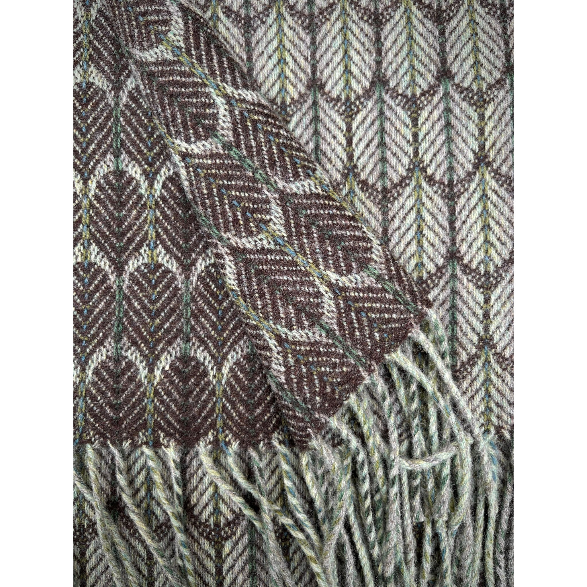 Sarah Tyssen is based is Surrey where she designs on a 16 shaft Louet Megado dobby loom in her workshop. She hand weaves a sample piece of each design and colour, then calculates yarn quantities for production, has the yarns dyed, and then produces very detailed specifications for the mill. She works very closely with them to achieve the same finish as her hand woven samples. Using power looms for small-scale production means she can concentrate on the designing, which is the part of the weaving process she enjoys most.