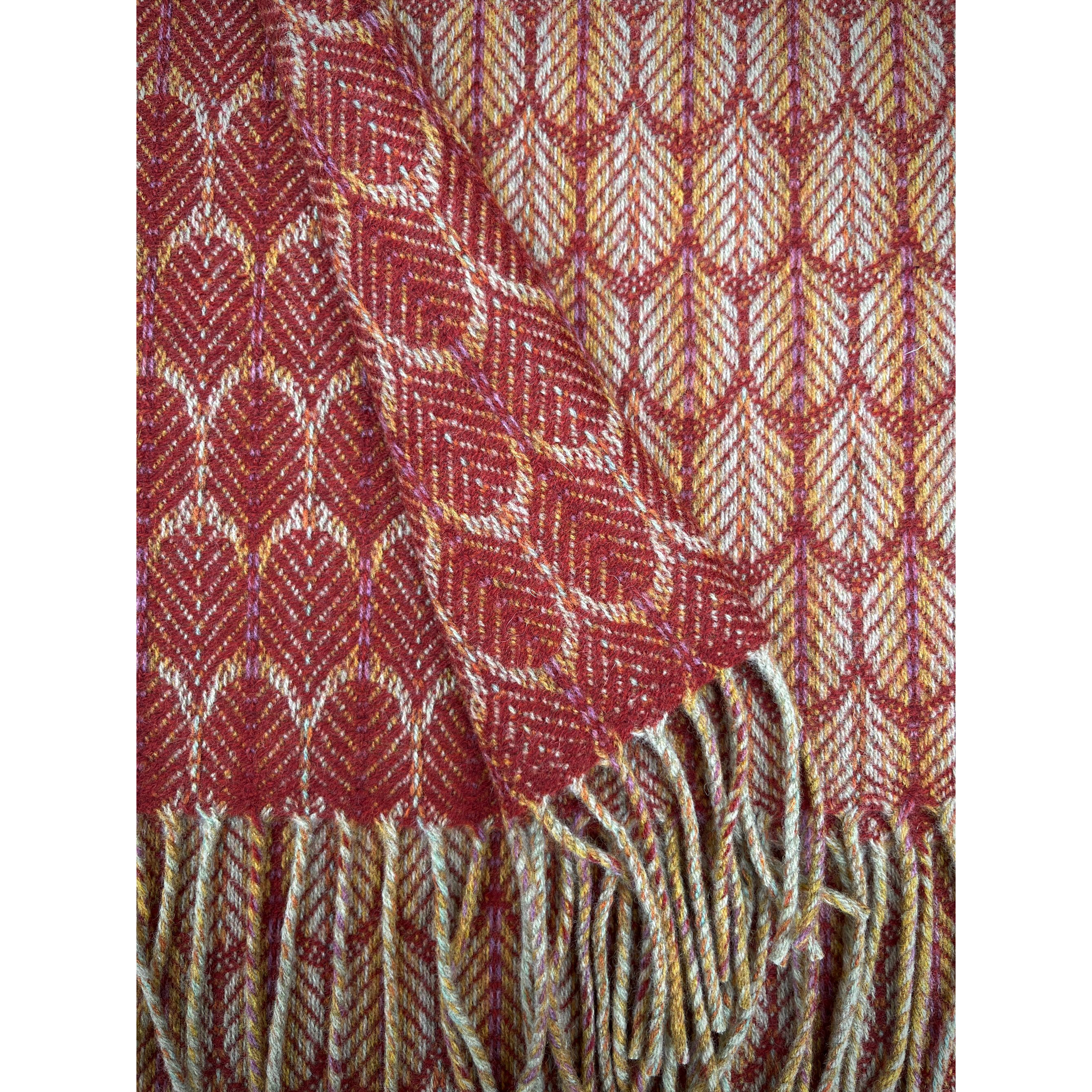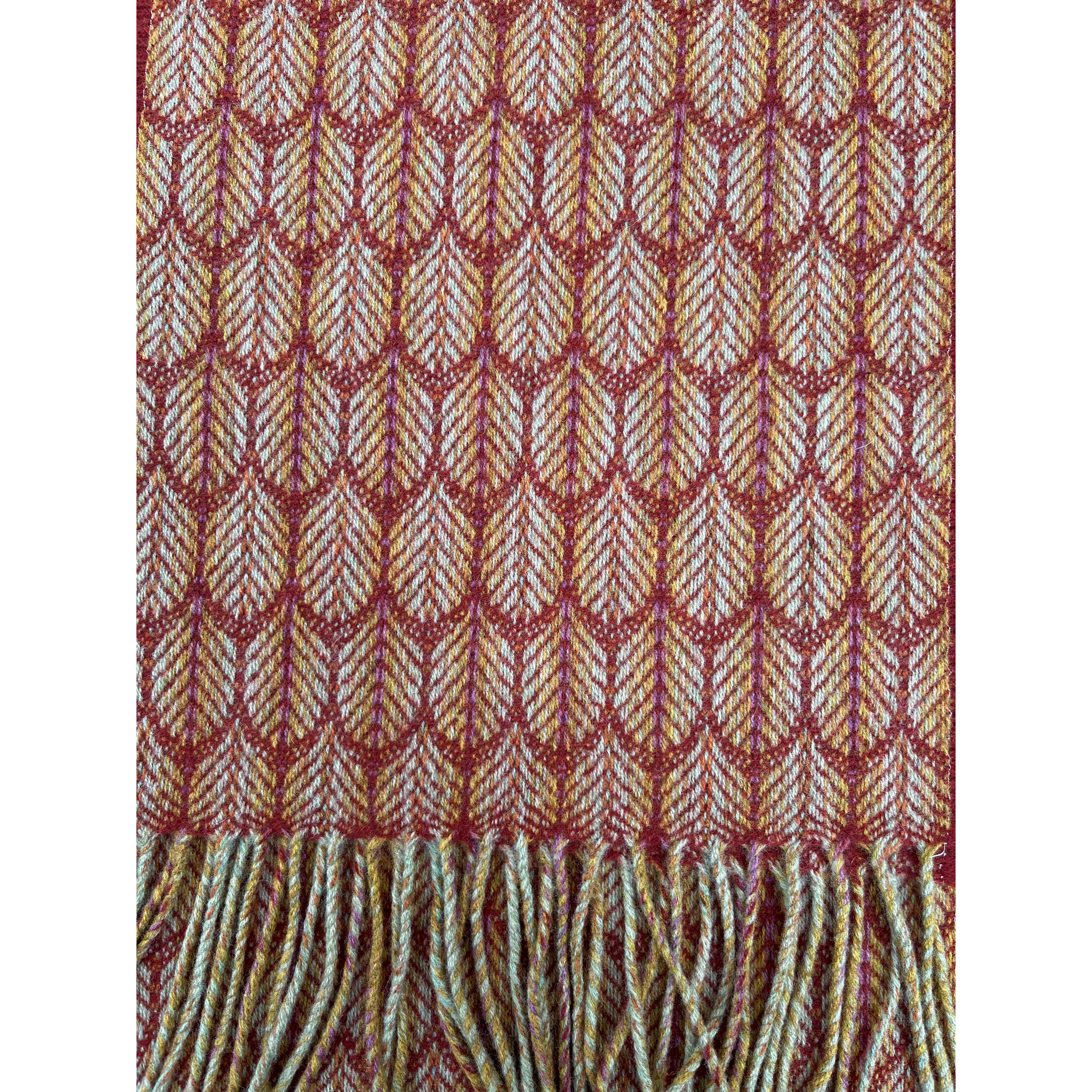 Sarah Tyssen is based is Surrey where she designs on a 16 shaft Louet Megado dobby loom in her workshop. She hand weaves a sample piece of each design and colour, then calculates yarn quantities for production, has the yarns dyed, and then produces very detailed specifications for the mill. She works very closely with them to achieve the same finish as her hand woven samples. Using power looms for small-scale production means she can concentrate on the designing, which is the part of the weaving process she enjoys most.
