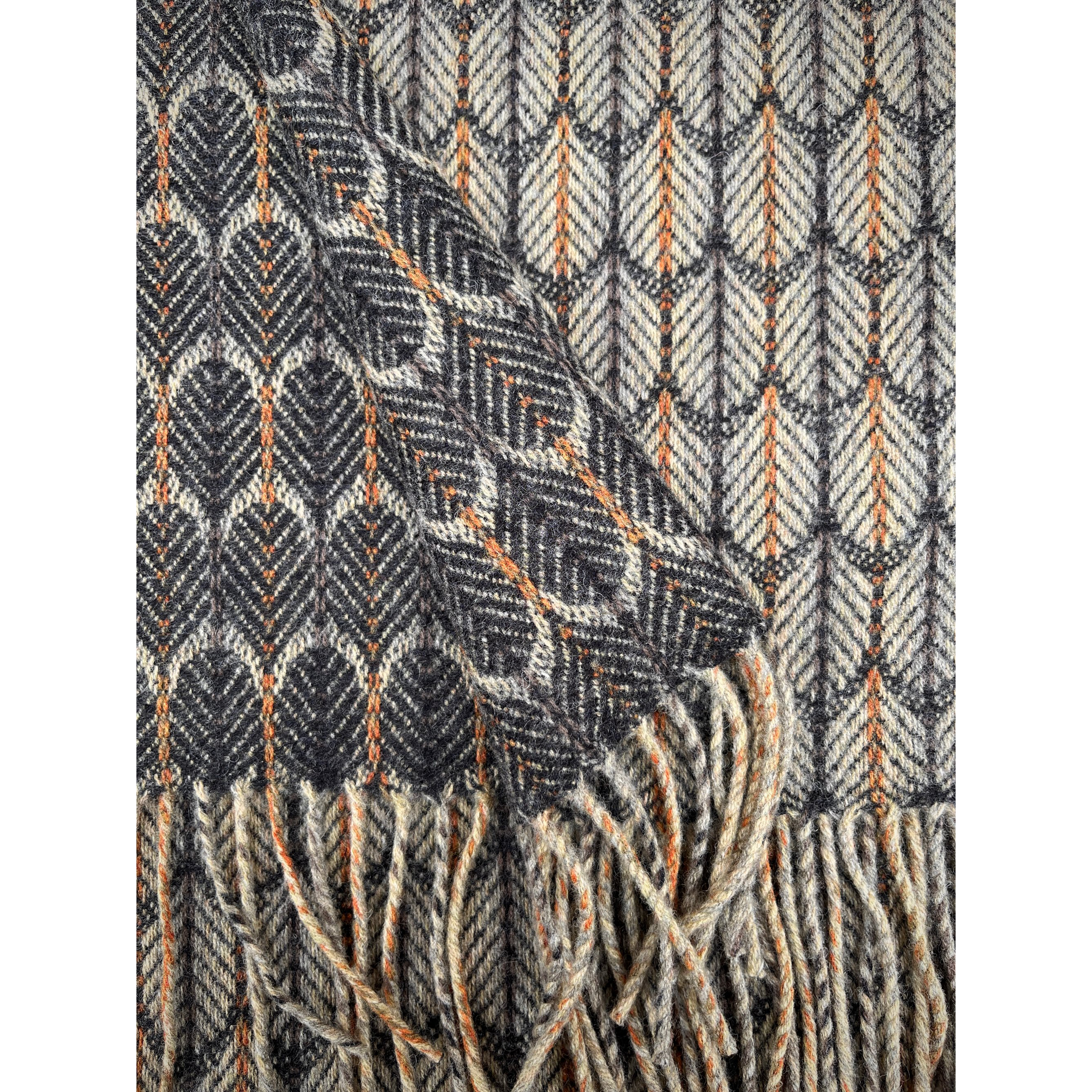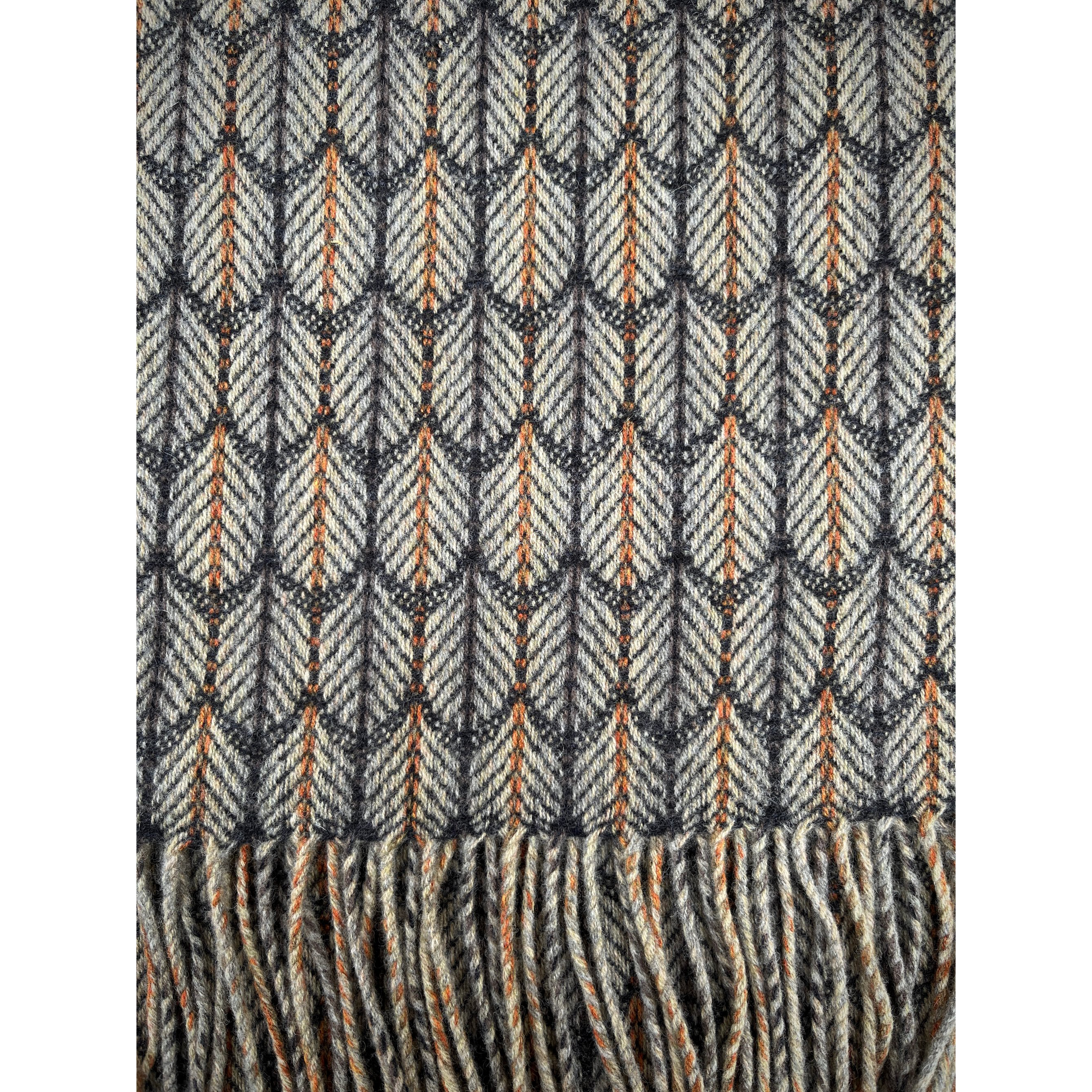 Sarah Tyssen is based is Surrey where she designs on a 16 shaft Louet Megado dobby loom in her workshop. She hand weaves a sample piece of each design and colour, then calculates yarn quantities for production, has the yarns dyed, and then produces very detailed specifications for the mill. She works very closely with them to achieve the same finish as her hand woven samples. Using power looms for small-scale production means she can concentrate on the designing, which is the part of the weaving process she enjoys most.