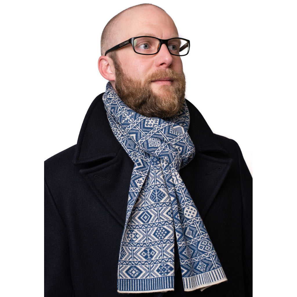 This is a 2-colour adaptation of BAKKA’s 5-colour landmark Fair Isle scarf where the motifs vary all over the scarf. It's the truly classic 2-colour Fair Isle scarf, perfect if you want an authentic but contemporary design.