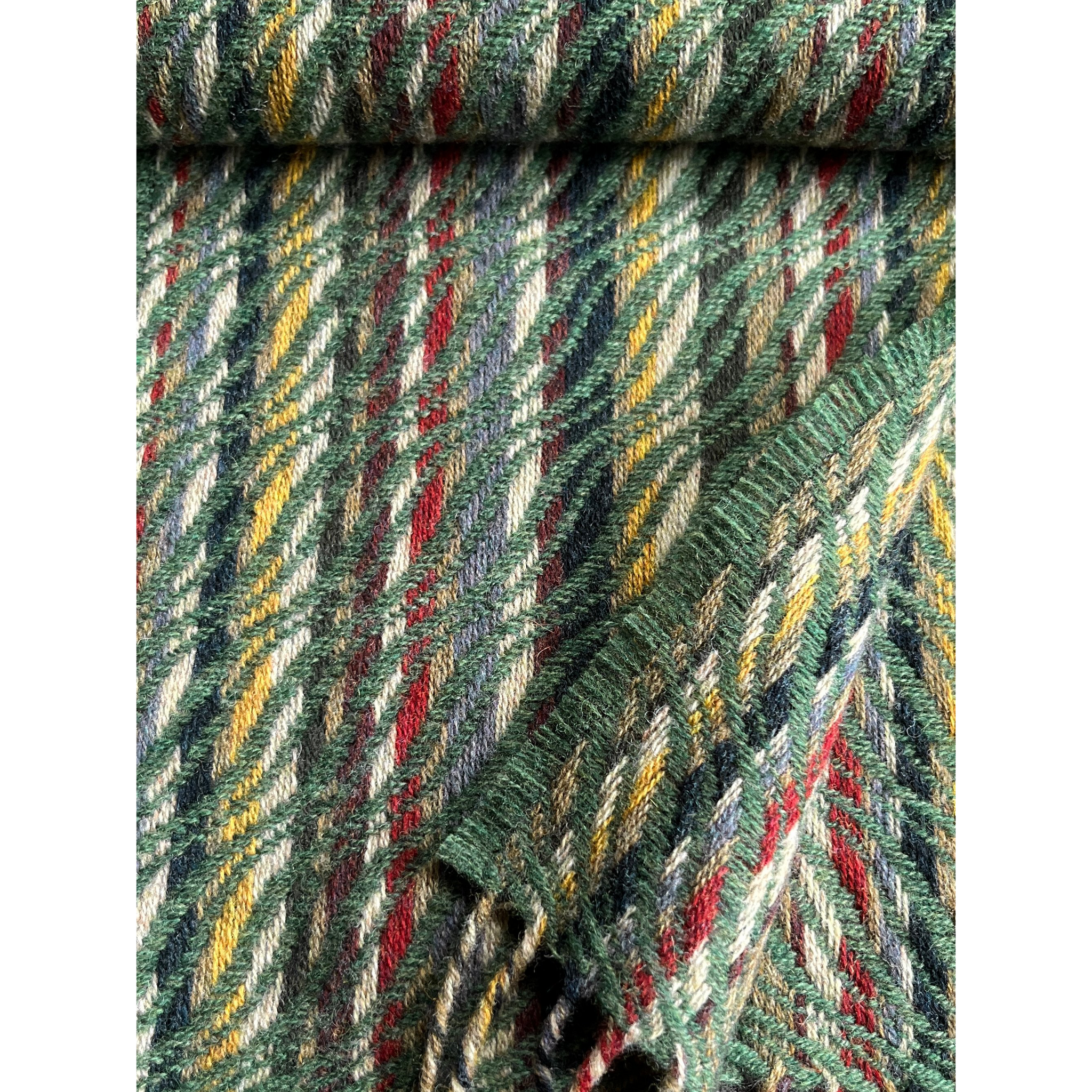 Sarah Tyssen is based is Surrey where she designs on a 16 shaft Louet Megado dobby loom in her workshop. She hand weaves a sample piece of each design and colour, then calculates yarn quantities for production, has the yarns dyed, and then produces very detailed specifications for the mill. She works very closely with them to achieve the same finish as her hand woven samples. Using power looms for small-scale production means she can concentrate on the designing, which is the part of the weaving process she enjoys most.