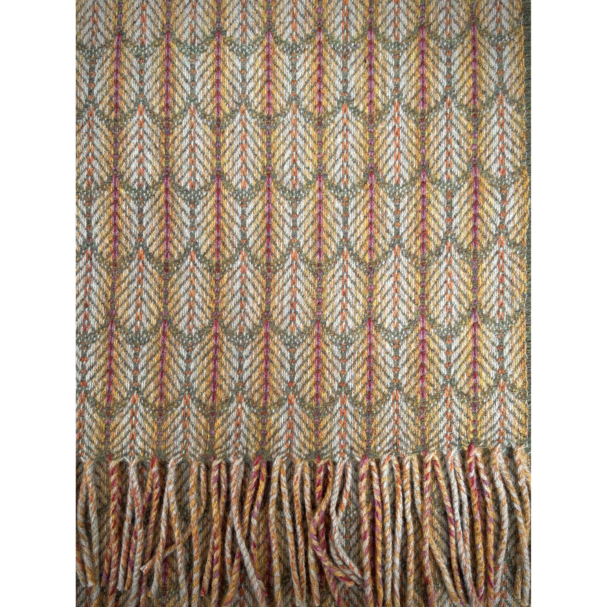 Sarah Tyssen is based is Surrey where she designs on a 16 shaft Louet Megado dobby loom in her workshop. She hand weaves a sample piece of each design and colour, then calculates yarn quantities for production, has the yarns dyed, and then produces very detailed specifications for the mill. She works very closely with them to achieve the same finish as her hand woven samples. Using power looms for small-scale production means she can concentrate on the designing, which is the part of the weaving process she enjoys most.