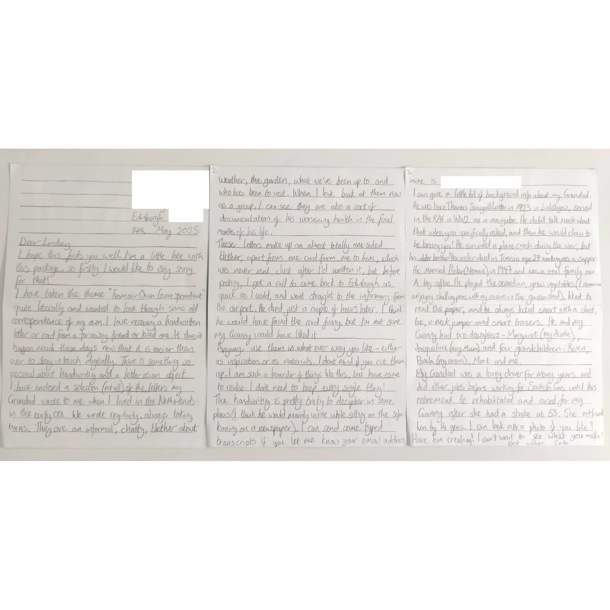 This memory brooch features excerpts from Carla Edwards’ grandfather’s letters that Carla sent to Lindsey as part of the ‘From Our Own Correspondence’ commission.