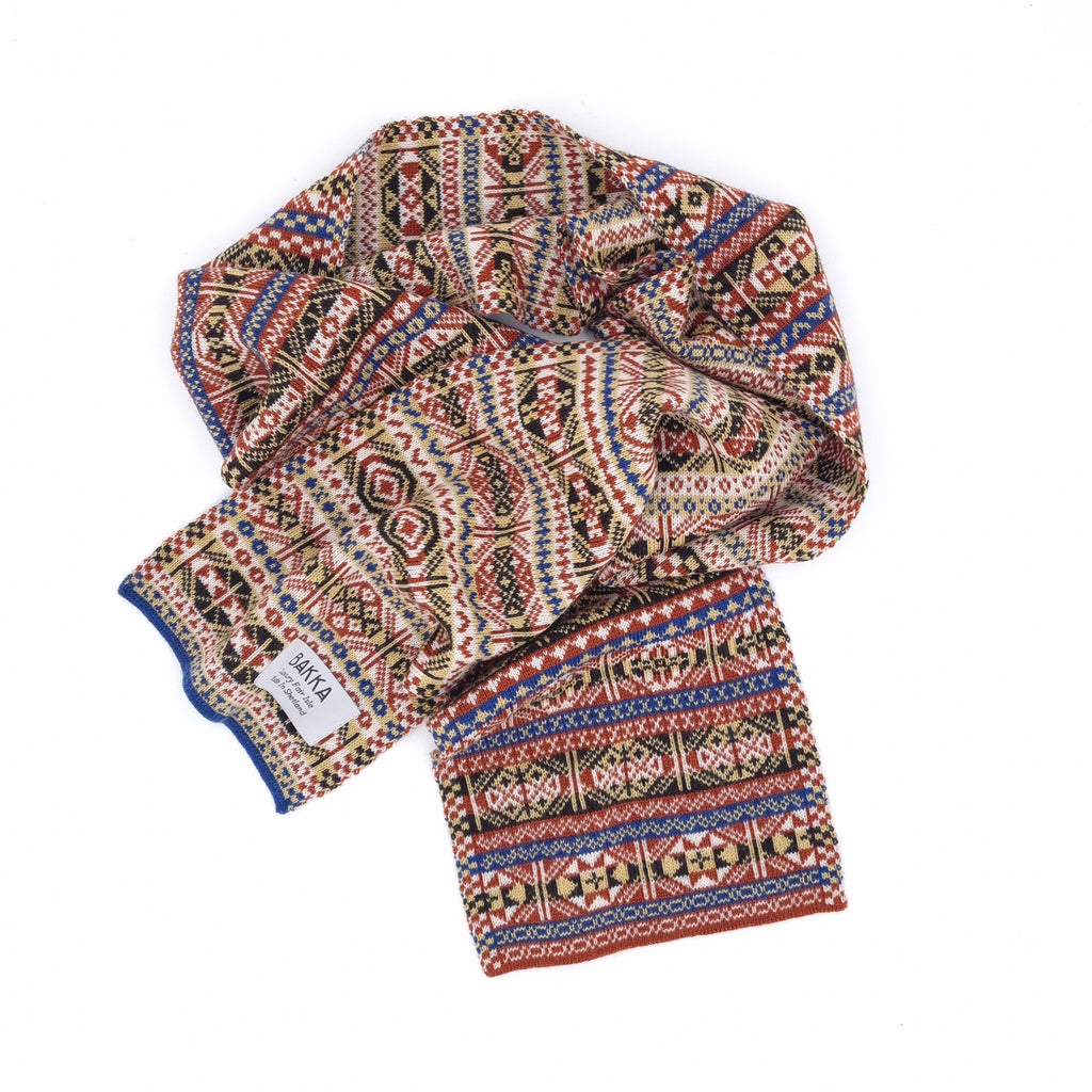 BAKKA produces Fair Isle textiles to the highest quality and standards. It preserves Shetland's rich knitwear heritage by using the oldest Fair Isle patterns and colours in a contemporary manner. All pieces are knitted in a unique reversible Fair Isle fabric using 100% superfine merino, a luxurious silky soft, warm and affordable yarn which is both sustainable and traceable. BAKKA operates a zero-waste policy. All samples and waste pieces are upcycled.