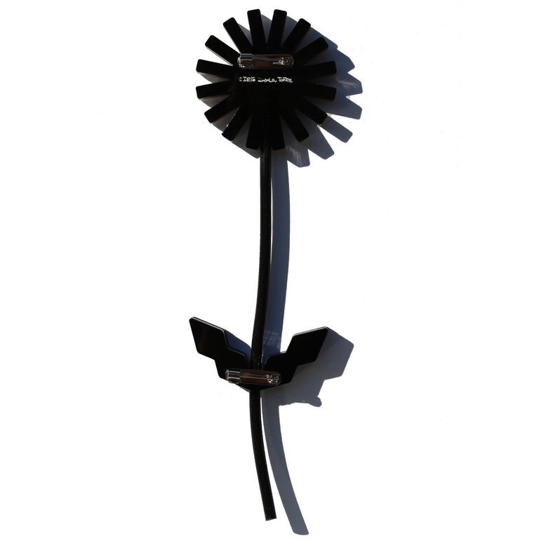 Iris De La Torre designs colourful and playful graphics which she transforms into jewellery, accessories and objects. Her work is inspired by Mexican Folk Arts and Crafts and the magic of 1960s graphic design. She considers thoughtfully and consciously every aspect of the design of a piece to ensure that it will have presence and longevity, so that the owner would love to keep it and look after it forever. She doesn’t follow fashion trends, but instead she draws inspiration from nature, history and life experiences that are close to her heart. Iris’ jewellery is mainly made by Perspex acrylic sheet; a recyclable material. She plans her work very well so that there is absolute minimum waste of materials. She assembles all pieces by hand in her Surrey studio with materials sourced, laser cut and digitally printed by her suppliers in the United Kingdom. Her aim is to produce an innovative graphic design narrative through her work and make a finished piece of jewellery design, object of illustration of which she is proud and embodies fun hope and optimism.