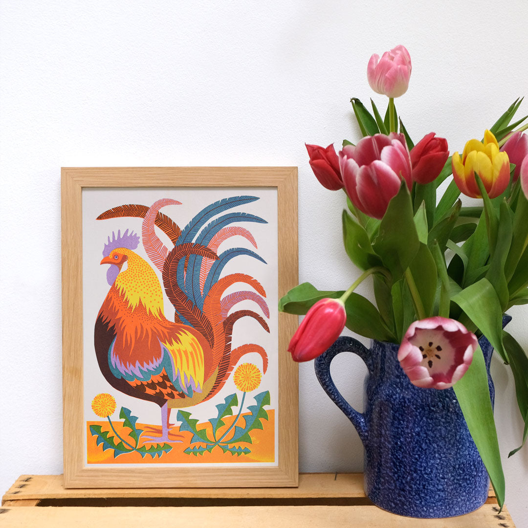 Rooster is a 4 colour risograph printed on Munken Lynx 170gsm paper. Available unframed.