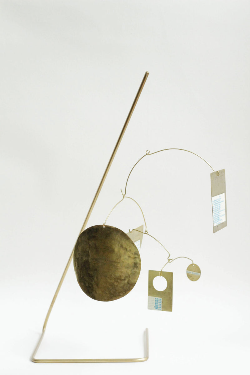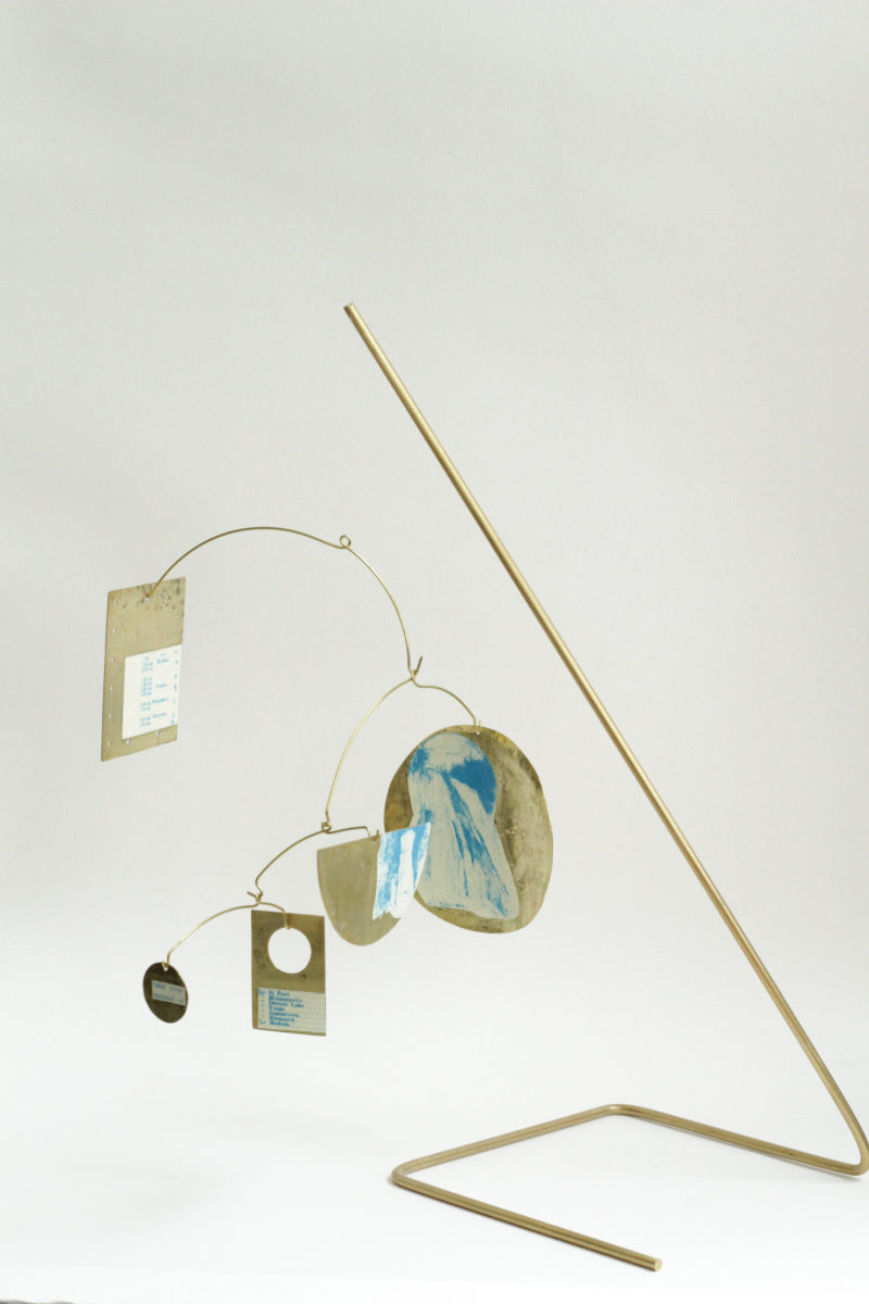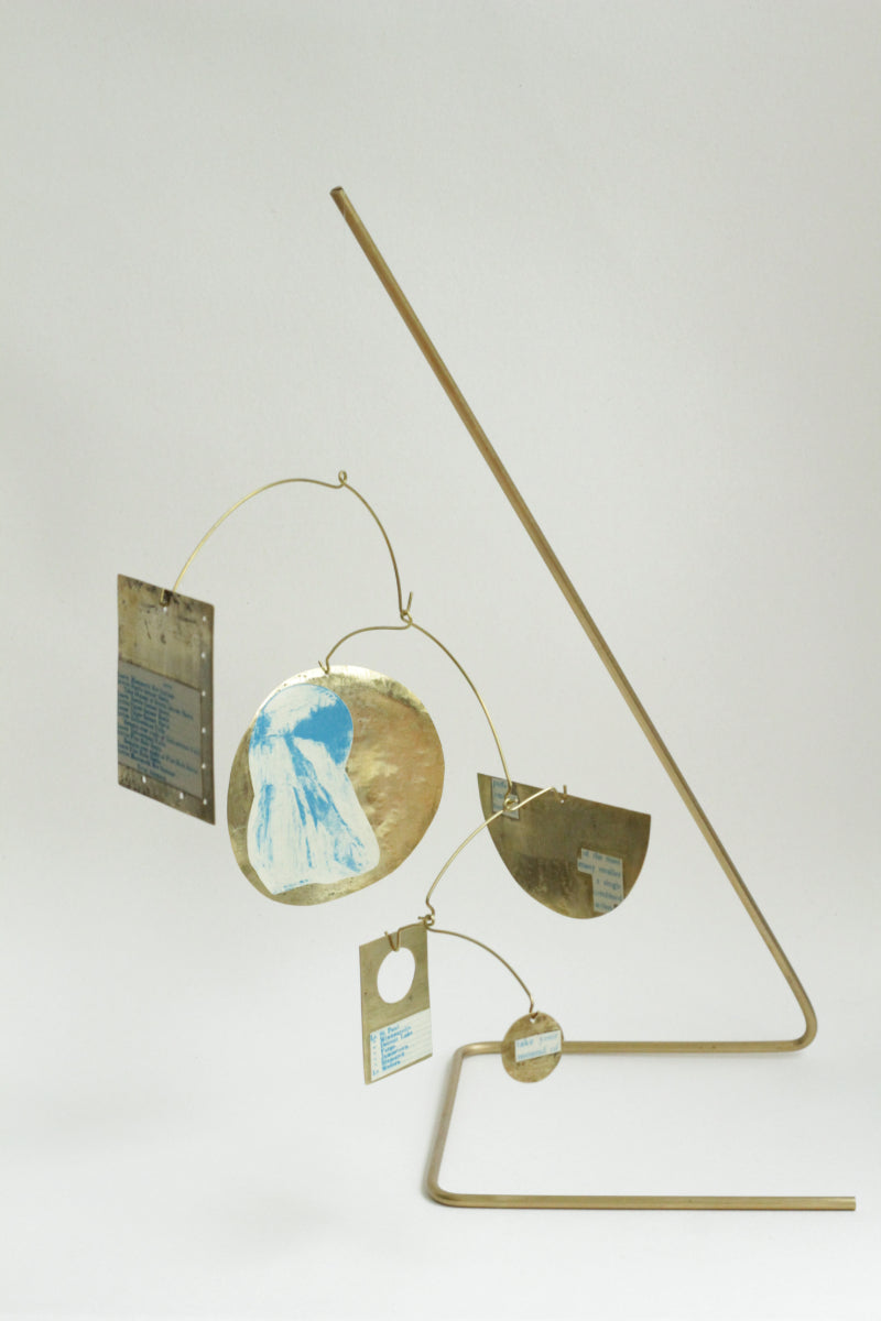 Of Air: Mobiles and Stabiles is Lucy Corr who makes small mobile and stabile sculptures at home using found materials and recycled everyday objects, working mostly with wood and metal. Her sculptures draw on the natural and urban landscape around her in London and she uses them to explore ideas of memory and time, for example, collaging images from old magazines and postcards and creating strange new juxtapositions by turning them into mobiles. Lucy forms metal shapes around stones and pebbles, collects fallen objects from the street and from parks and aims to reuse and repurpose forgotten or discarded things into something beautiful. She makes mobiles and stabiles which become moving collages and poems.