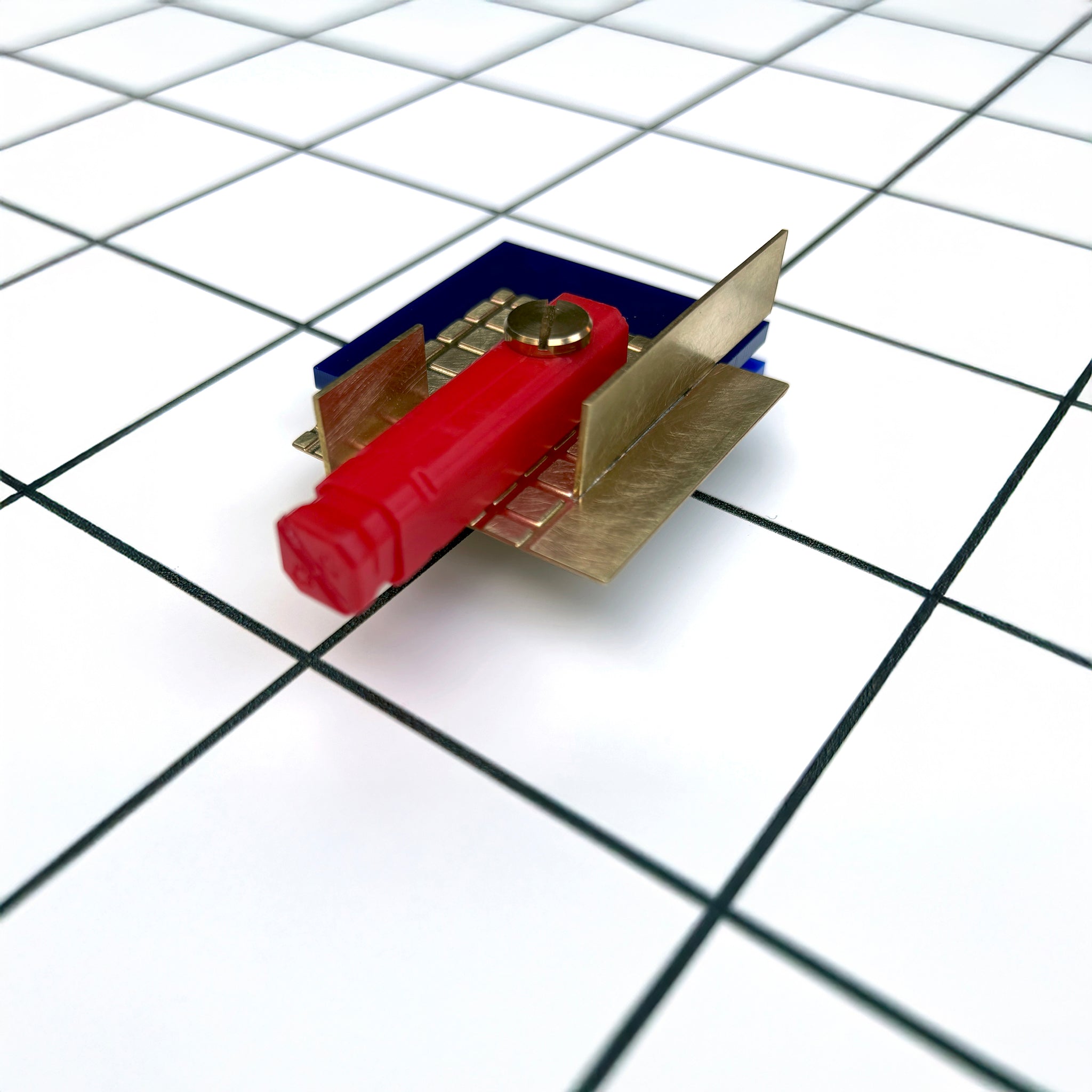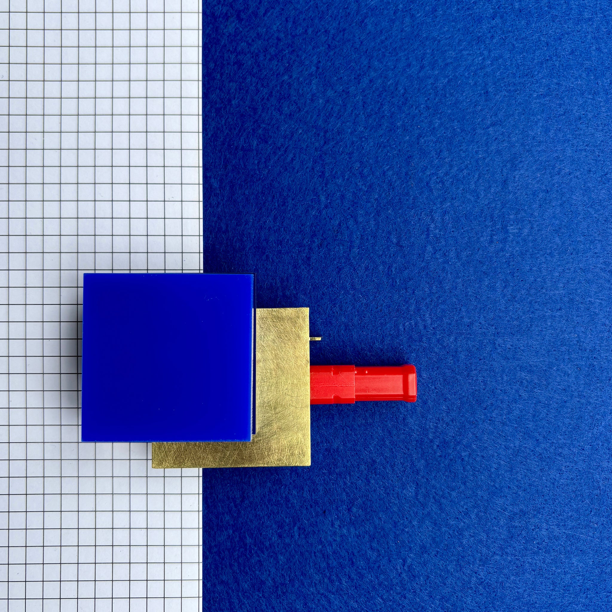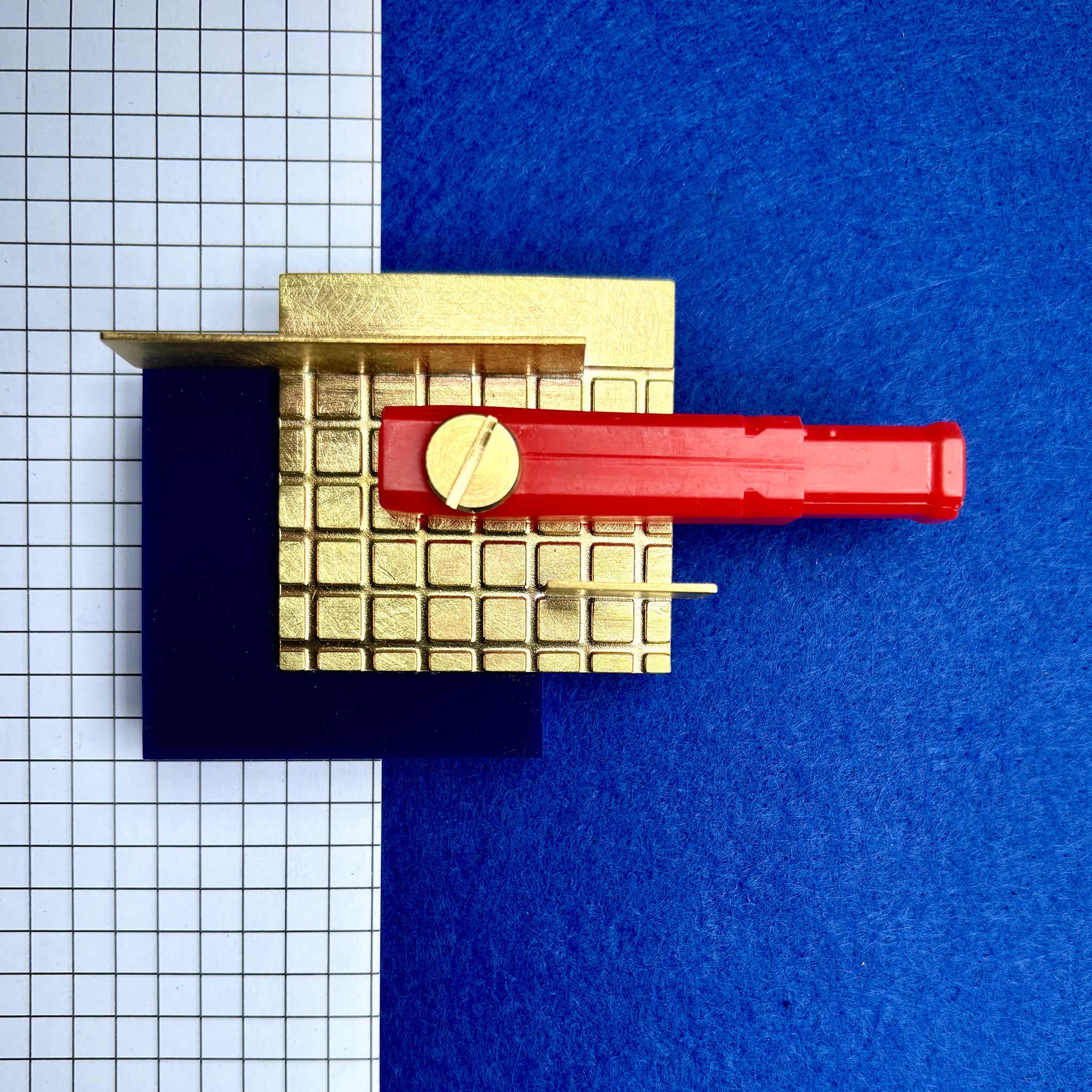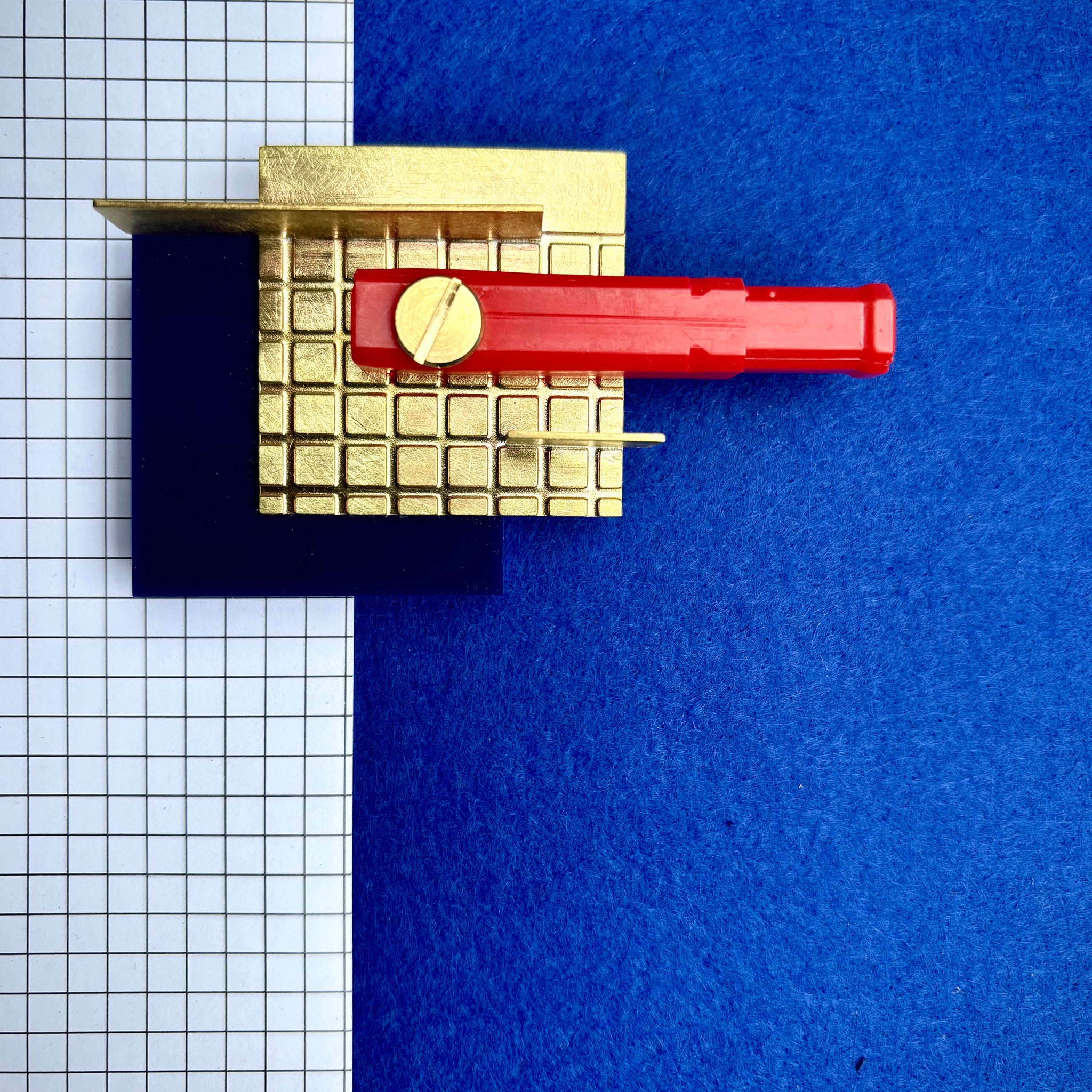 Materials: Laser etched brushed brass, acrylic, a drill bit case and neodymium magnets.