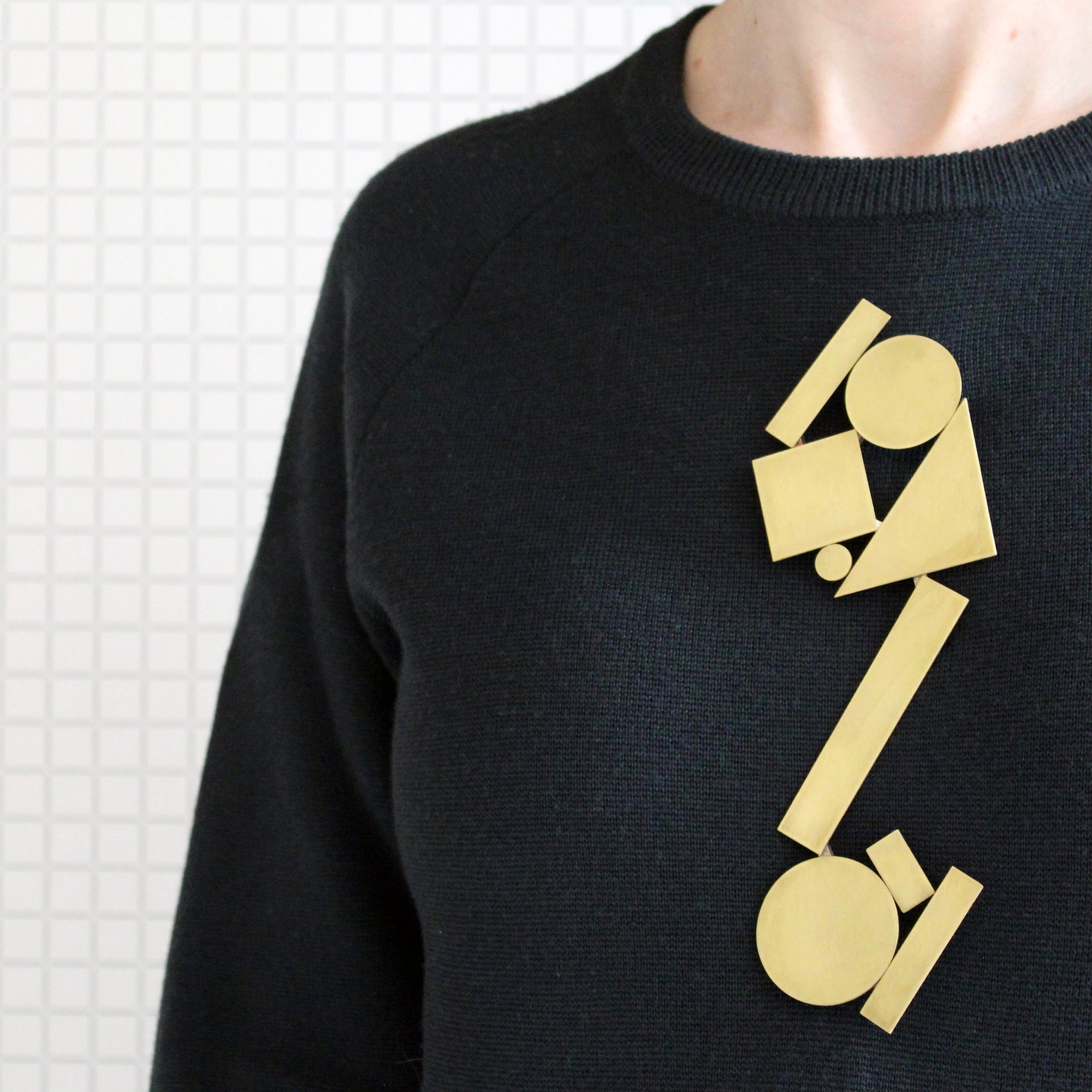 This statement body brooch is secured with two tie tack/clutch back pins to make positioning of the brooch easy whichever way up you choose to wear it.