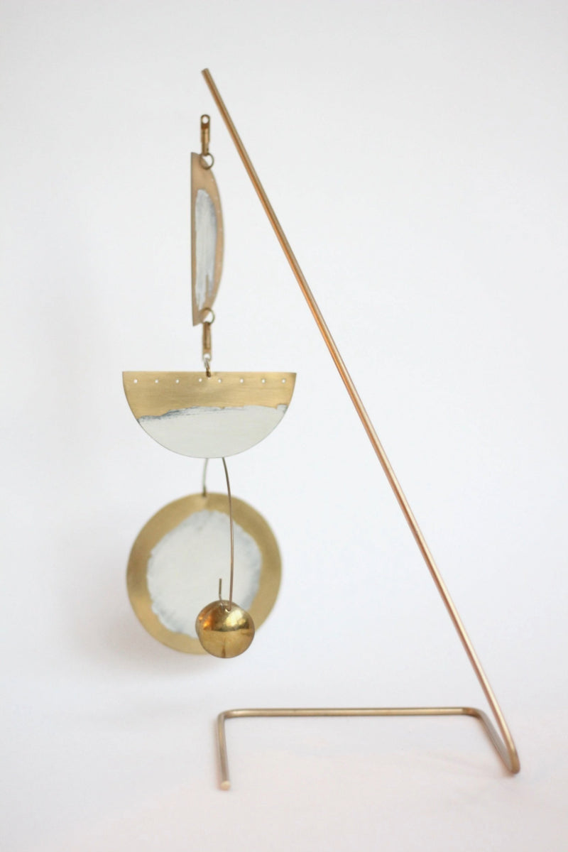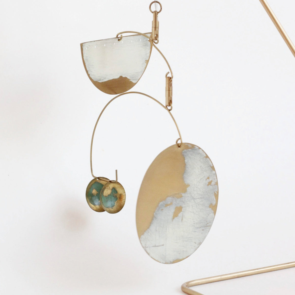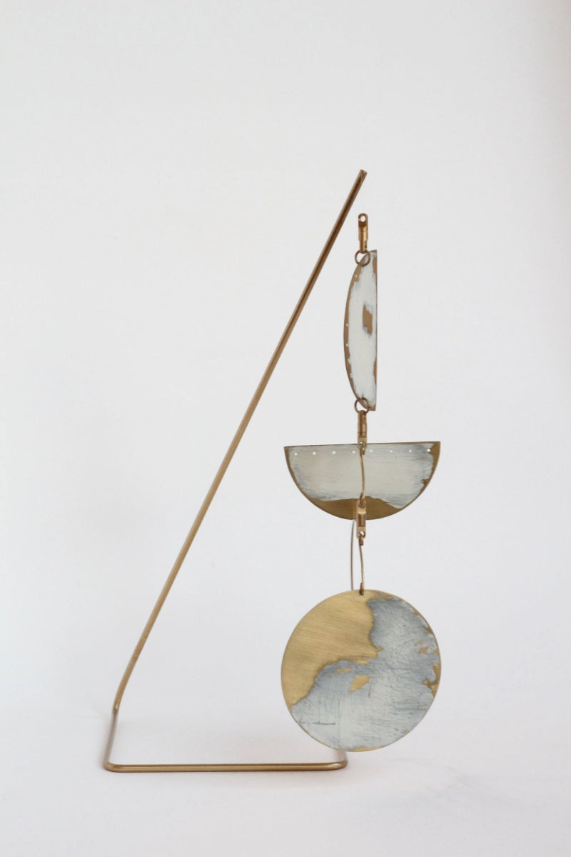 Mobile on brass stand. Brass sheet and acrylic paint.